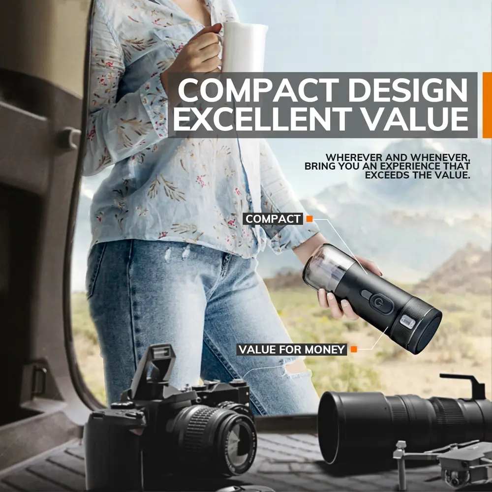 Esta máquina de café portátil é perfeita para quem aprecia a conveniência de preparar um espresso fresco onde quer que esteja. Com sua capacidade de uma xícara e design compacto, você pode desfrutar do seu café favorito em qualquer aventura ao ar livre. Mantenha seu amor pelo café vivo, não importa para onde você vá.