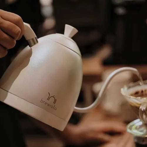 A chaleira Brewista Artisan Gooseneck em aço inoxidável é elegante e funcional. Com capacidade de 600ml, o Artisan é perfeito para servir o café e fica equilibrado e confortável na mão na hora de servir.