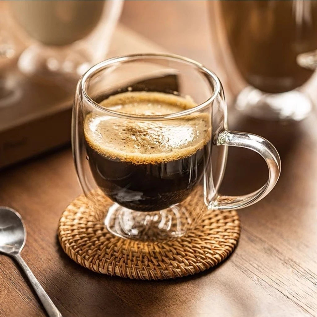 Desfrute de bebidas com a temperatura ideal por mais tempo com a Caneca de Café de Vidro de Dupla Camada com Alça, a escolha ideal para aqueles que valorizam qualidade, estilo e funcionalidade em uma única caneca.